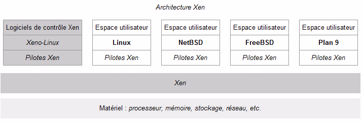 Pour éclaircir un peu mes propos, je vous propose un graphique de wikipedia, tiré de l’article parlant de Xen (ici).