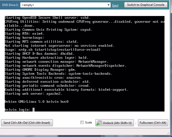 Je ne sais pas si c’est le client VNC XenCenter, le serveur VNC de la VM, ou moi qui ne suis juste pas doué (probablement la dernière hypothèse, surtout pour le côté VNC que je connais très mal), mais j’ai vraiment des problèmes que je considère comme bloquants pour l’utilisation de Linux en mode graphique sous XenServer.