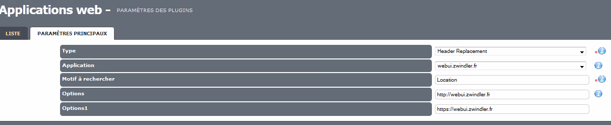 Une fois nos deux applications définies dans vulture, il reste encore un petite opération pour que le tout fonctionne. A l’heure actuelle, le code de Shinken à la facheuse tentance à générer des liens et à rediriger automatiquement vers des pages via des URLs absolues… du type http://@IP_locale/webui. En local, votre navigateur saura résoudre cette IP privée, mais pas sur Internet. C’est pourquoi nous allons demander à vulture de réécrire tous les contenus qui posent problèmes à la volée. Pour cela il faut aller dans le menu « Plugin de réécriture de contenu ». Il faudra transformer toutes les requêtes qui sont en HTTP en local en HTTPS derrière vulture, et transformer les URL pnp pour qu’elles pointent vers la bonne application.