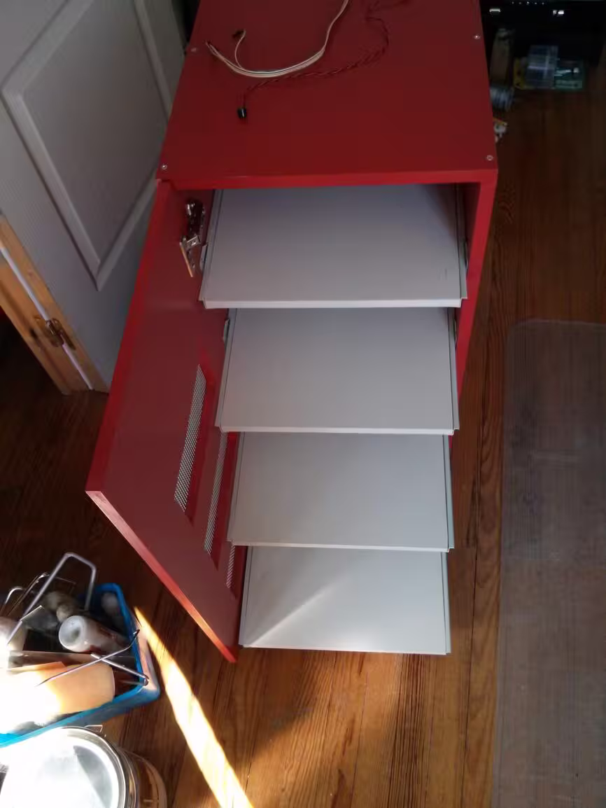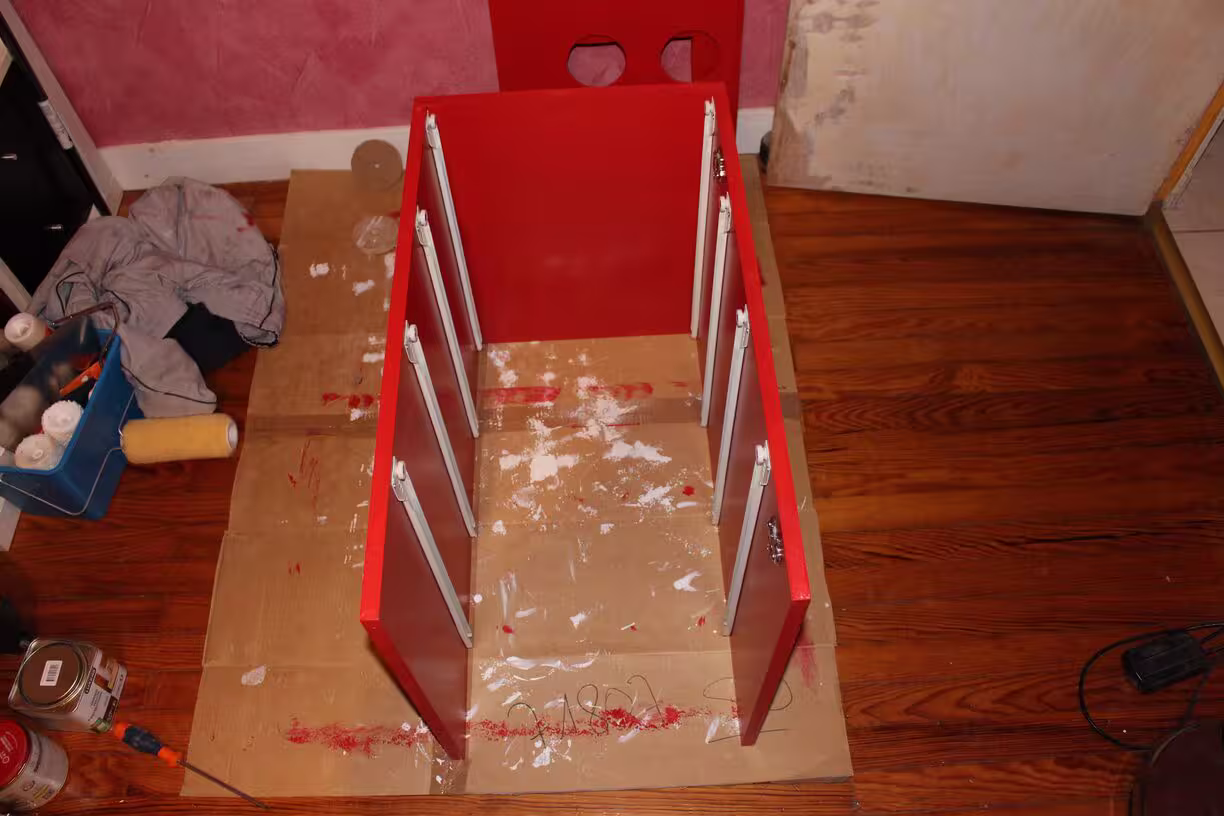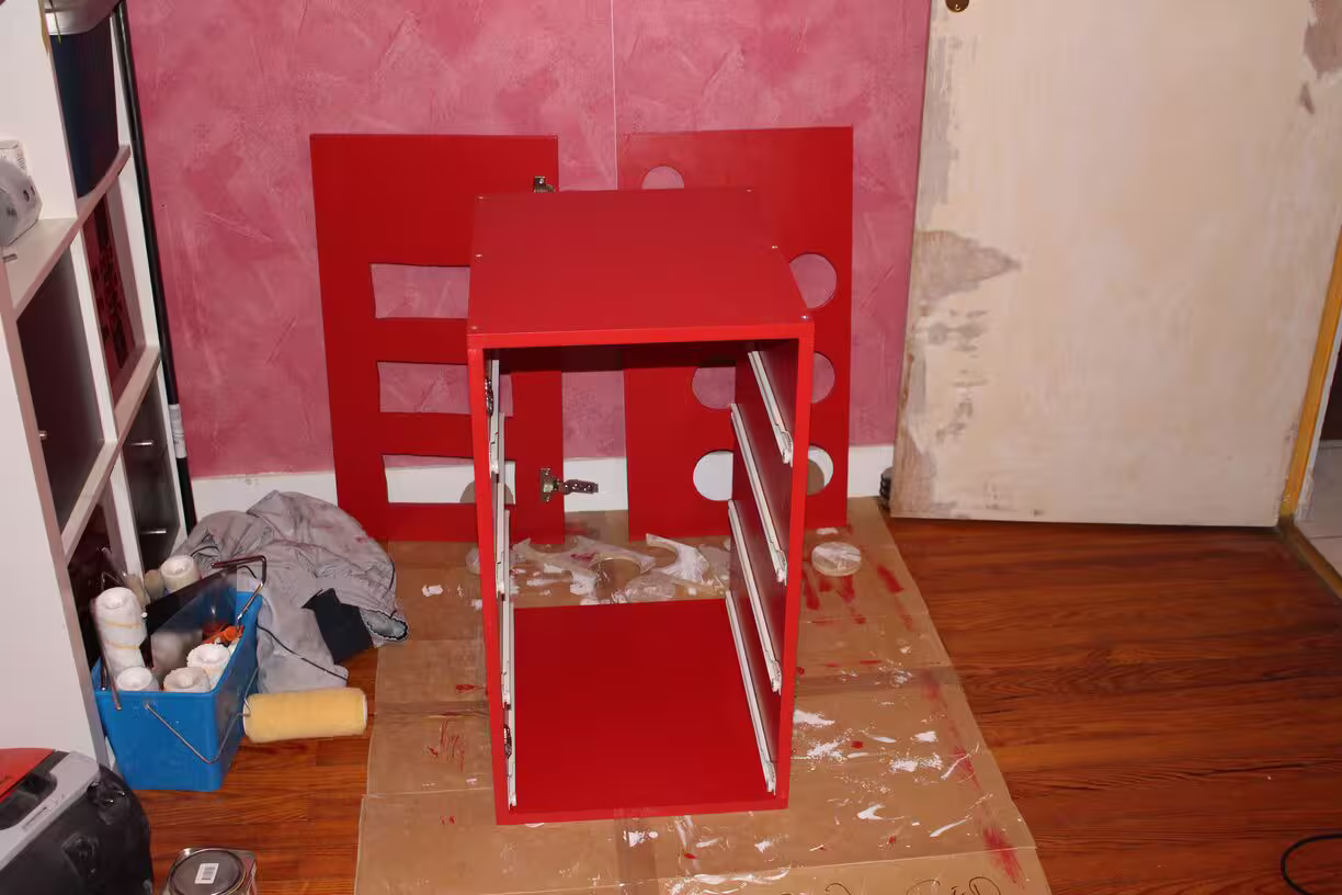 … problème de design : les tiroirs frottent sur la porte quand elle est ouverte à 110°. Je dois la laisser à 90° :-/
