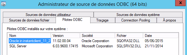 Lorsqu’un progiciel installé sur un serveur Windows nécessite une connexion à une base Oracle, il n’est pas toujours nécessaire d’installer un client Oracle (même Runtime). Des fois, c’est simplement le pilote ODBC qui est nécessaire.