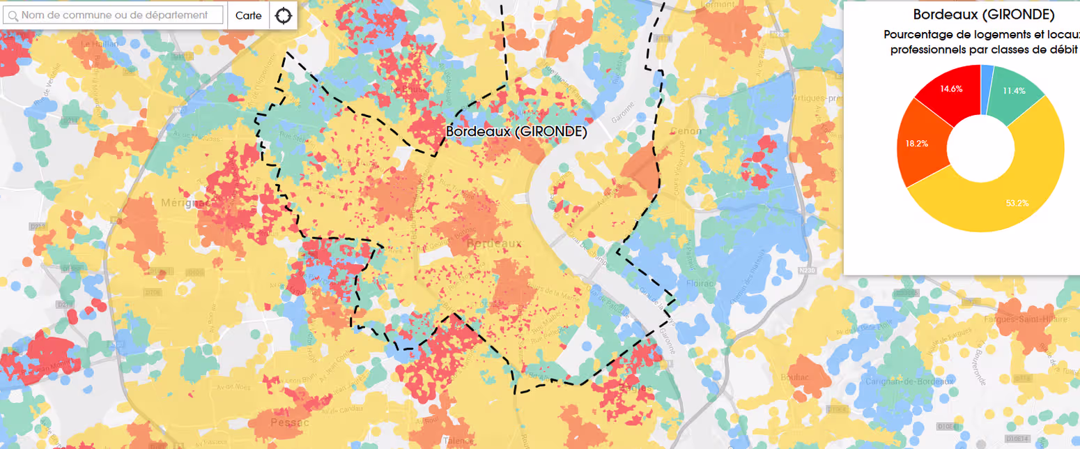 En tant qu’auto hébergeur qui cherche toujours à optimiser la disponibilité de mes services à la maison. Du coup, je n’ai qu’un mot pour décrire cette carte : j’adore. C’est vraiment une façon sympa de visualiser la carte des débits en France et comparer les zones géographiques. Ça m’a également permis d’observer l’évolution du déploiement de la fibre, actuellement en cours dans la région bordelaise.