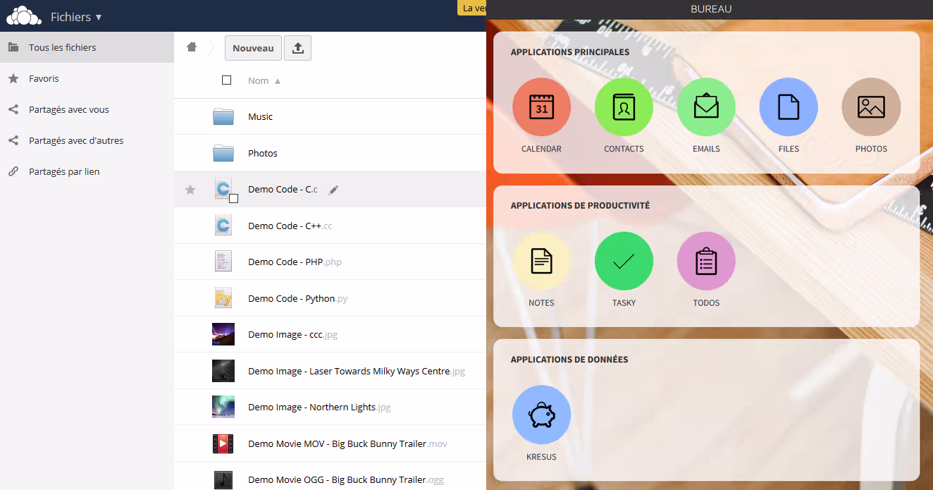 Vous n’êtes toujours pas convaincus ? Allez voir la démo ! C’est un avis personnel, mais niveau ergonomie on est bien loin de l’interface vieille école d’Owncloud, il n’y a pas photos… Jugez par vous même !
