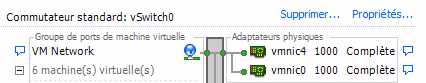Reproduire la manipulation pour tous les VMKernel (VMNetwork et Management Network dans l’exemple, mais pas le vSwitch, qui doit lui avoir toutes les interfaces).