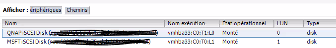 Le périphérique doit apparaitre dans la liste des périphériques disponibles de ce menu. A partir de là, il peut être utilisé comme un disque ou un LUN classique dans le menu Matériel/Stockage qui liste les datastores.