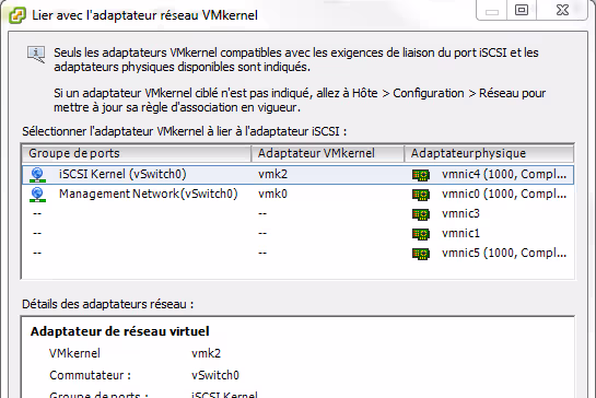 Configurer le VMKernel dans l’adaptateur iSCSI
