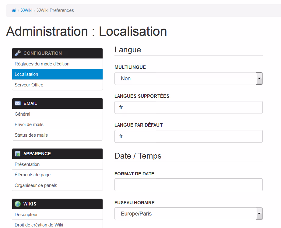 Ok ça fonctionne. Mais bon, la première chose que vous voudrez peut être faire c’est passer le XWiki en Français.