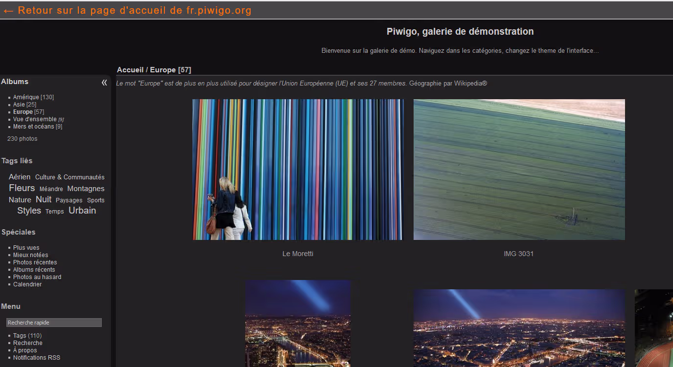 En fouillant dans les commentaires de l’article de Korben cités plus haut, je suis tombé sur un commentaire d’un des développeurs de Piwigo (Pierrick LE GALL), un autre projet, Français et libre, visant à fournir un serveur de galerie web.
