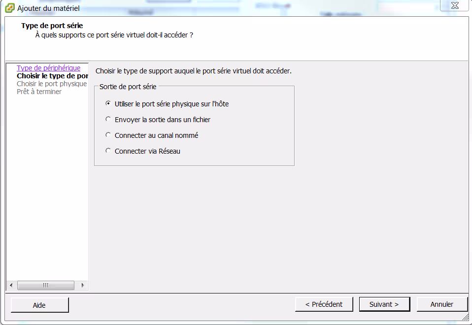 Transfert du port série GSM de l’hôte physique vers la machine virtuelle