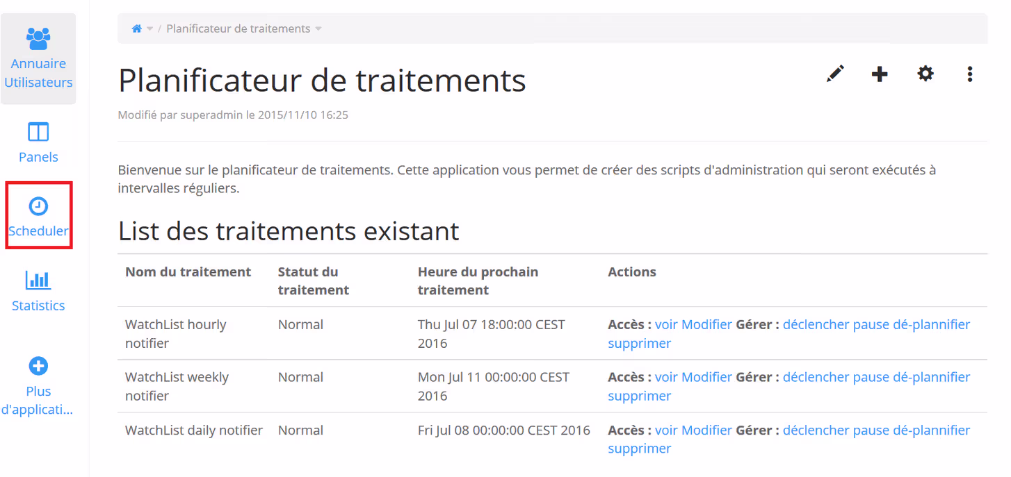 On peut couper/relancer ou même forcer le déclenchement des traitements de l’application WatchList (et des autres !).
