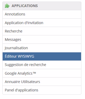 Les items peuvent être réordonnés comme souhaités et apparaîtront dans l’éditeur WYSIWYG dans l’ordre dans lequel ils sont placés dans cette section.