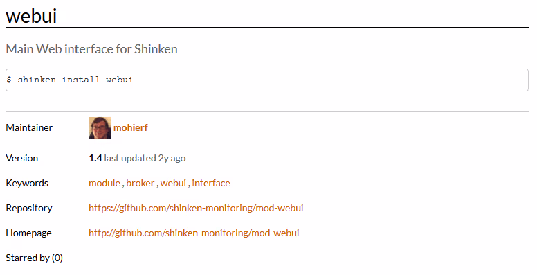 Les développeurs de Shinken ont mis à disposition sur shinken.io une liste de modules (plus de 100 je crois) optionnels et qui ne sont pas inclus dans le logiciel de base. Pour autant, certains sont quand même très utiles voir carrément importants. C’est notamment le cas de la webui (interface graphique officielle de Shinken).