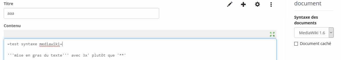 A priori depuis l’été, il existe également une extension MediaWiki Syntax qui ajoute un parser compatible avec la syntaxe Mediawiki. Je ne l’utilise pas puisque j’ai réussi à migrer toutes mes pages, mais pour la copie de pages longues et complexes, cela peut éventuellement être une solution alternative.