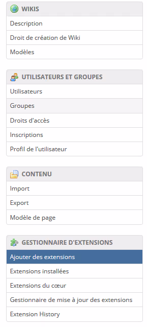 Tout ceci peut s’installer en téléchargeant les packages sur le site ou directement (et c’est même plutôt conseillé) depuis le magasin d’extension dans l’administration de votre XWiki :