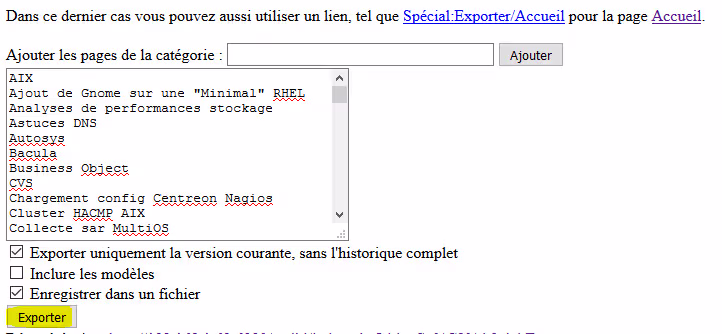 - La seconde est tout simplement là aussi la page spéciale d’export de pages, que l’on accède via un lien du type