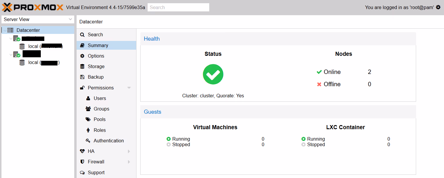 On ne peut pas se baser là dessus dans le cas présent car Proxmox a la fâcheuse manie de réinitialiser toute la configuration lorsqu’on démarre le mode « cluster » .