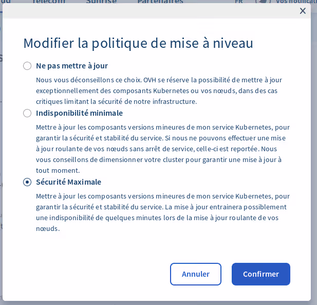 Un point sympa que permettent les solutions de type KaaS est la gestion des mises à jour depuis votre interface de gestion. Mettre à jour Kubernetes, c’est pénible. La moitié du temps, on a peur de tout casser.