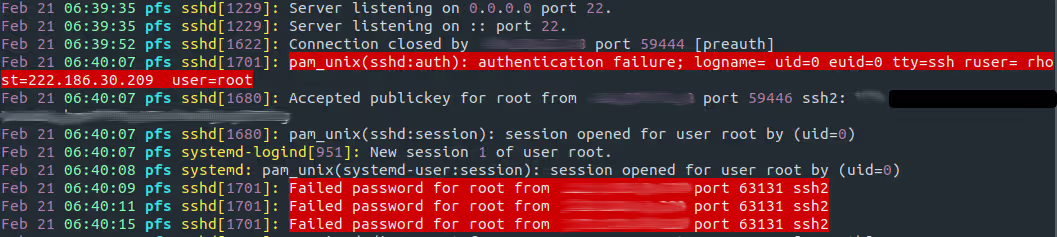 J’ai redémarré mon serveur à 06:39:35, et à 06:40:09 je recevais ma première attaque.
