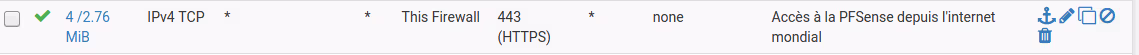 Si jamais, pour débugger, vous avez besoin de laisser passer le ping, on peut le réactiver de manière sélective dans PFSense.