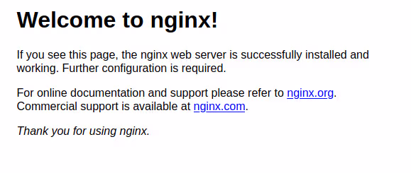 - Le réseau LAN. Tapez par exemple 192.168.9.10 dans votre navigateur, et vous tomberez sur le serveur nginx qu’on a déployé plus tôt.