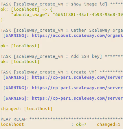 Et pour ceux qui n’ont pas de serveur à disposition, je vous ai également mis un playbook permettant de déployer une machine sur le cloud provider français Scaleway.