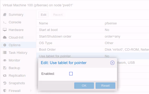 Là par contre, celle ci à de la valeur même sur PVE6. Proxmox VE ajoute systématiquement sur les VMs une option : “Use tablet for pointer”.