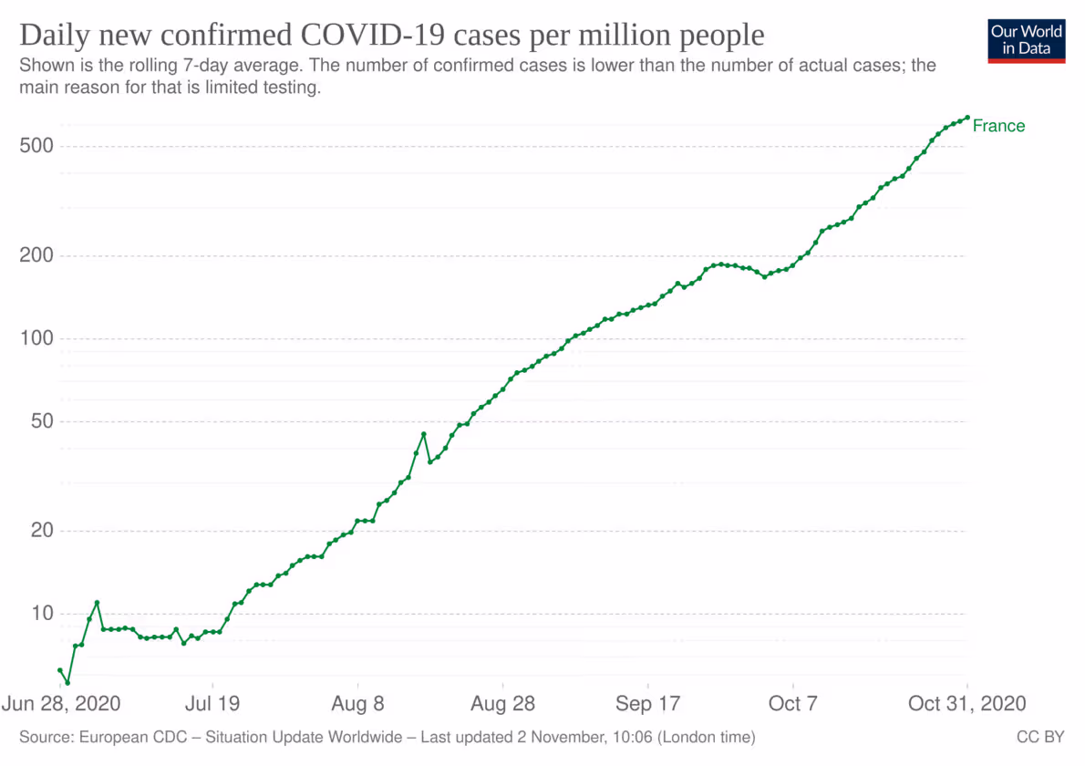 Pour ceux qui ne voient pas l’exponentielle, j’ai mis une échelle logarithmique