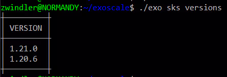Et on teste que la connexion marche bien avec la commande permettant de lister les versions de Kubernetes disponibles sur SKS