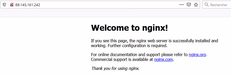 Très rapidement, vous devriez avoir accès à votre pod via l’IP du NLB Exoscale