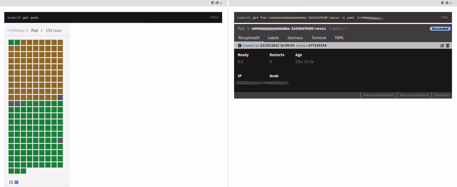 Cependant, si vous avez la patience d’apprendre ces fameux raccourcis, c’est sans aucun doute l’outil le plus puissant pour utiliser Kubernetes au quotidien. On peut facilement “drill down” dans notre cluster, filtrer les pods, faire du port-forward facilement, visualiser les CRDs, …