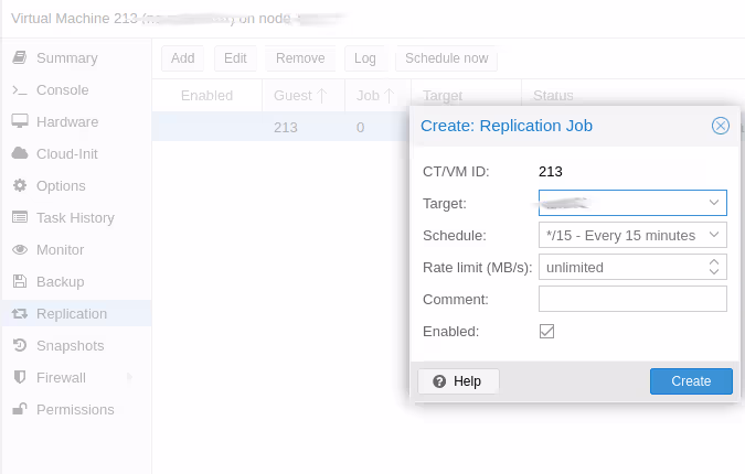 Avec mon cluster Proxmox, j’ai aussi un plan de reprise d’activitĂ© (PRA). Les dĂ©veloppeurs de Proxmox VE ont astucieusement tirĂ© parti de la fonctionnalitĂ© de rĂ©plication asynchrone de ZFS pour pĂ©riodiquement (par dĂ©faut toutes les 15 minutes) synchroniser des disques entre des machines distantes.