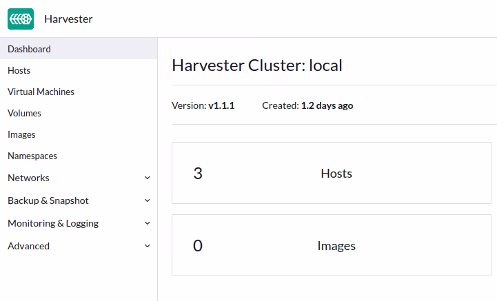 Harvester est présenté comme une solution HCI basée sur Kubernetes mais avec une interface simplifiée à l’extrême pour permettre à des opérateurs IT (vos équipes IT traditionnelles, disons) qui ne maîtrisent pas ces technos, de le gérer. La simplicité est vraiment l’argument principal mis en avant et l’interface reflète cette promesse.