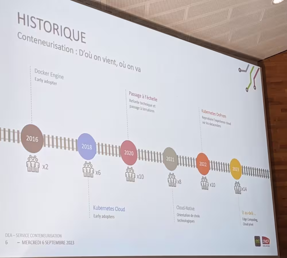 La première chose qu’ils font, c’est de s’assurer que les équipes ont le bagage technique minimum avant de donner le go à la création d’un cluster, quitte à envoyer les devs en formation. Il n’y a pas de lobbying pour “pousser” à Kubernetes, le risque d’échec serait trop grand pour certaines équipes. Des sages décisions ;-)