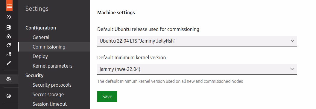 Rappel : la phase commissioning sert à faire une première installation d’un hôte minimal pour l’enrôler dans notre pool de serveurs disponibles avec MAAS, en vue d’une future installation. Si on veut modifier l’OS installé par défaut quand on déploie une machine, c’est bien le menu de la phase “Deploying” qu’il faut modifier.