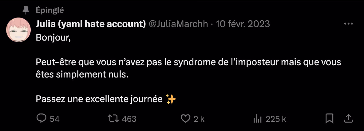 Je vais être franc (et peut-être passer pour un sale ingrat, désolé 😞) : ce livre de développement personnel n’a de “contre-courant” que le fait de contenir des grossièretés et des insultes. La personne qui résume le mieux ce livre (paradoxalement sans l’avoir lu, si j’ai bien compris), est Julia, qui m’a dit sur Twitter :