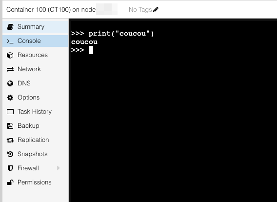 À partir de là, le container est accessible, parfois en console (ça dépend du container)
