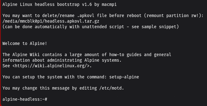 wget https://github.com/macmpi/alpine-linux-headless-bootstrap/raw/469ee440e7d394cca0976c78f357e7a0e1c82cc4/headless.apkovl.tar.gz