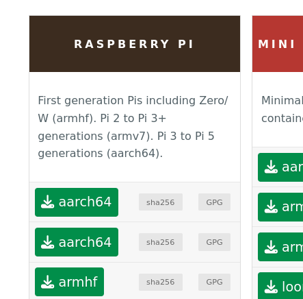 Coup de bol, Alpine Linux propose des images spécifiques pour Raspberry Pi, on ne va pas avoir besoin d’ajouter à la main le firmware des RPi.