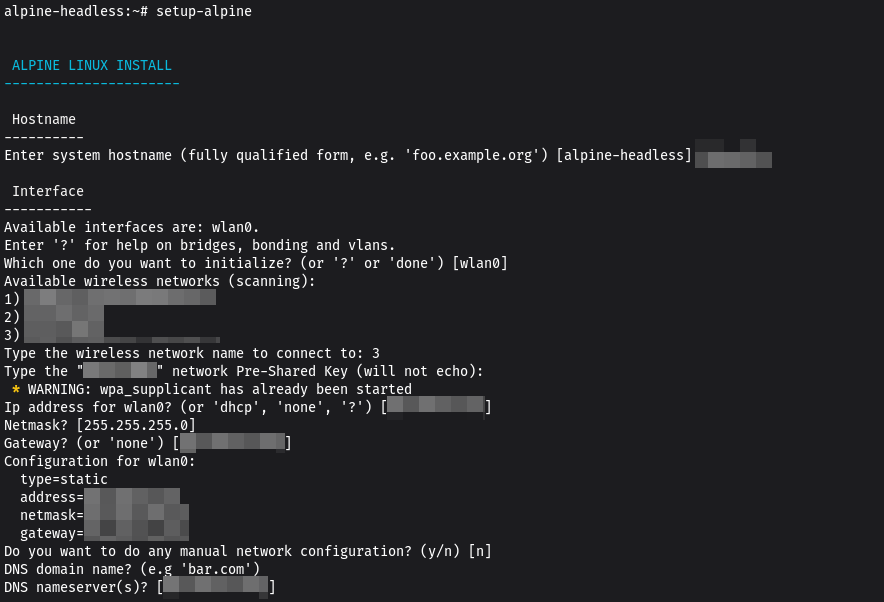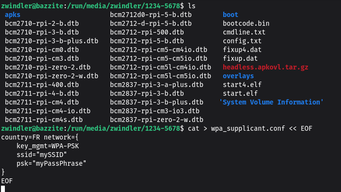 Note : Le projet alpine-linux-headless-bootstrap propose d’autres options de configuration très utiles, comme la définition d’un mot de passe root, d’une adresse IP fixe, etc. Plus d’infos dans leur README.