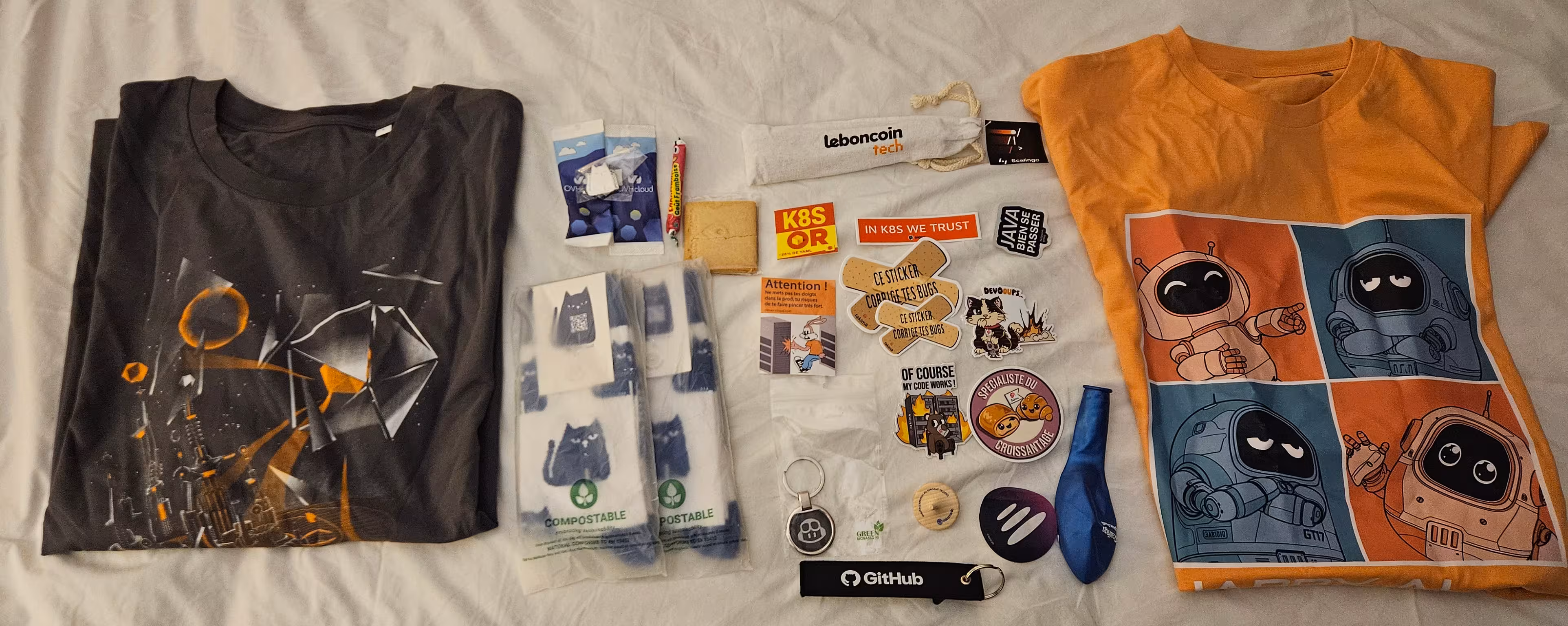 Pour ce jeudi, j’ai raté les keynotes du matin (arrivé un peu tard), j’ai donc commencé par un tour des stands avant d’enchaîner avec les talks de la matinée. J’en ai profité pour récupérer des goodies pour les enfants au passage (:P).