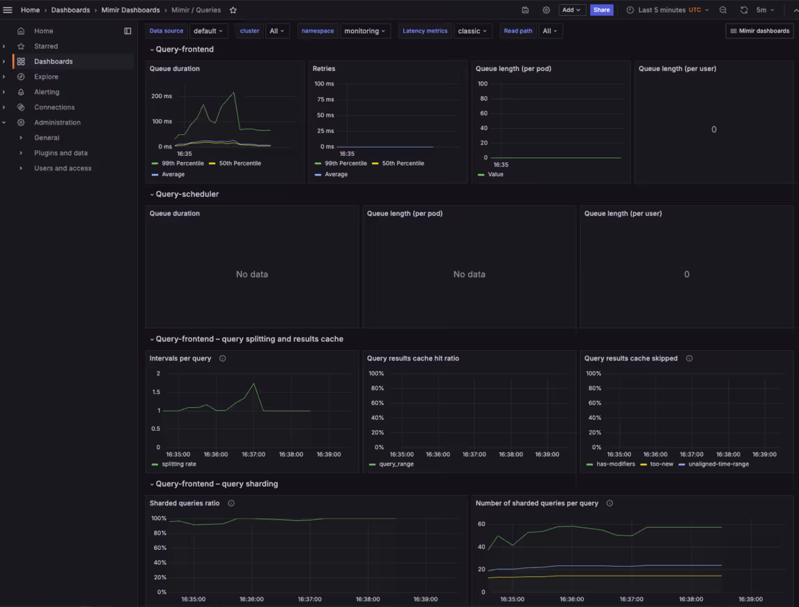 Mimir is shipped with a lot of useful Grafana dashboards to help ensure that the components are running fine.