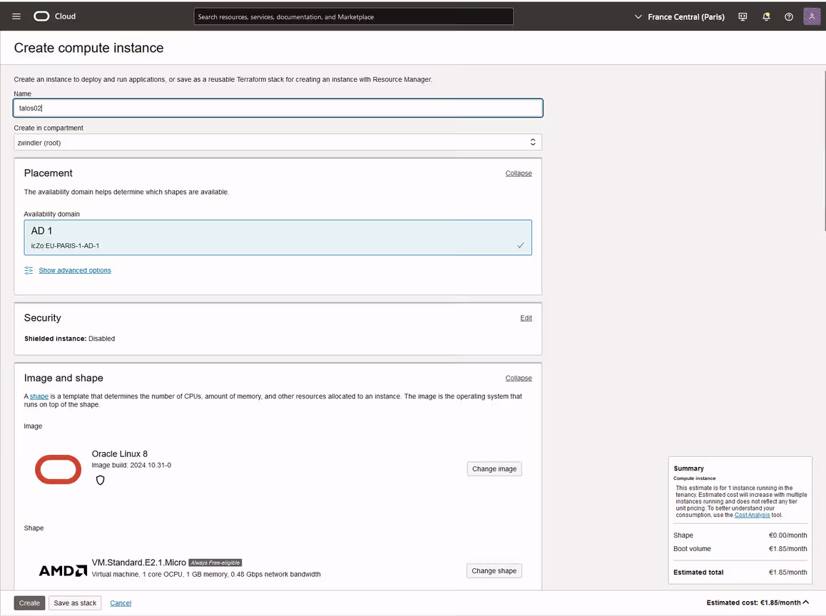 For example, the bucket where we uploaded the QCOW2/.oci is most likely paid. Same for the custom image, which is billed as 1 GB of storage (according to the UI, I don’t have the bill yet LOL).