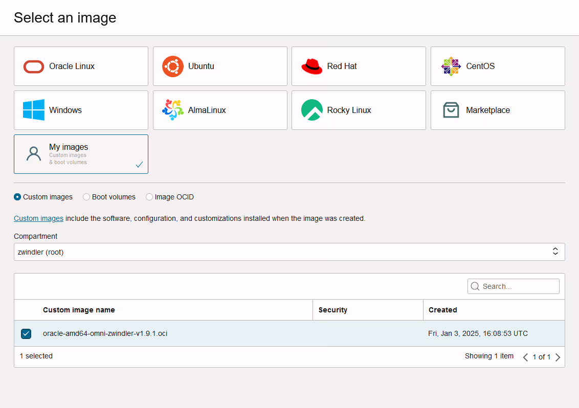 With Oracle Cloud Infrastructure, it’s possible to boot a list of predefined OSes, but in our case, Talos Linux is not on the list.
