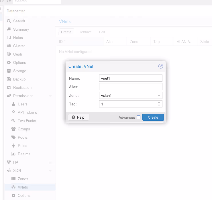 As an alternative, we could have gone directly with the most complete/complex version of the Proxmox VE SDN: EVPN Zones